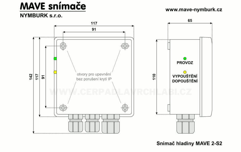 Snímače hladiny MAVE 2-S2 se vyrábějí v provedení pro vnější montáž nebo pro montáž do rozvaděče na DIN lištu 35 mm (označení DIN).